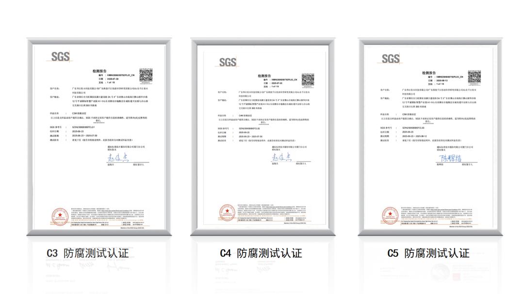 权威性能验证:通过ISO 12944 C3/C4/C5 全等级认证,涂层性能远超行业标准。
