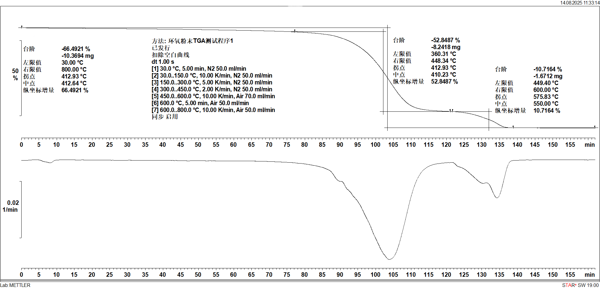 粉末涂料的热稳定性对其加工性能与使用寿命具有决定性影响,尤其在动力电池、储能设备等高温应用场景中,耐高温性能直接关系到涂层的可靠性与耐久性。梅特勒托利多TGA热重分析仪凭借亚微克级的高分辨率,可实时监测样品在加热、冷却或恒温过程中的质量变化,全面解析材料的热分解行为、氧化稳定性及吸附特性,从而为涂料的热稳定性和耐候性设计提供关键数据支撑。