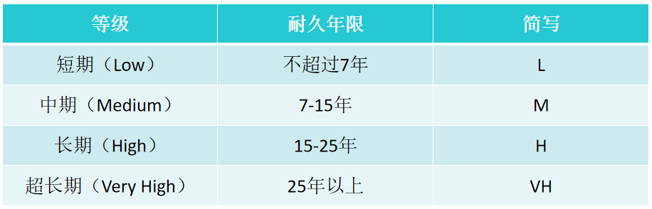 在国际标准ISO 12944中,根据腐蚀环境的严酷程度,将环境腐蚀性划分为C1至C5等多个等级。其中,C5级属于极高腐蚀性环境,代表着腐蚀防护领域的最高要求,同时,标准规定了以下4种不同的耐久性范围: