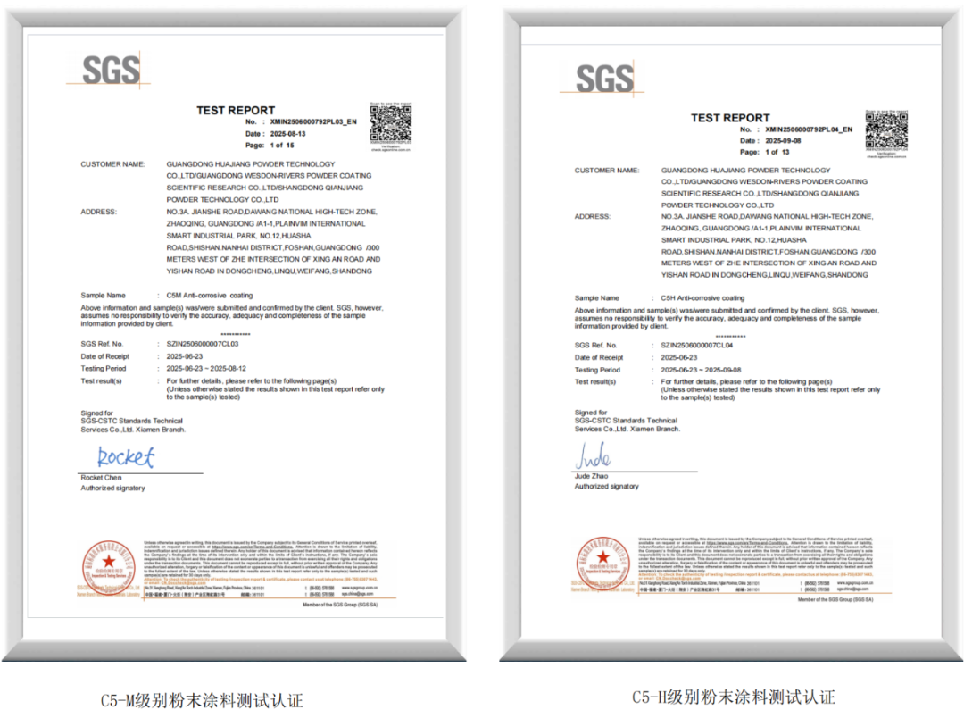 千江高新的超防腐粉末涂料体系,已成功通过权威机构的C5-M与C5-H双重认证,为不同需求的客户提供精准的解决方案。